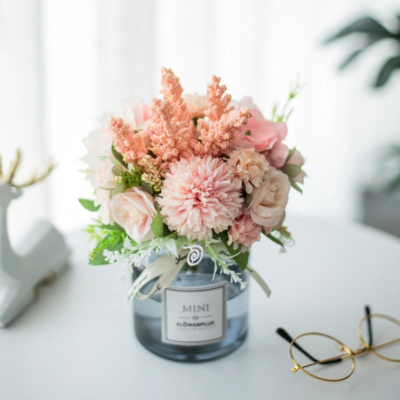 Enova home blush artificial hydrangea flower arrangements with clear glass vase faux hydrangea flowers artificial blush hydrangeas enovahome 4.5 out of 5 stars (496) sale.